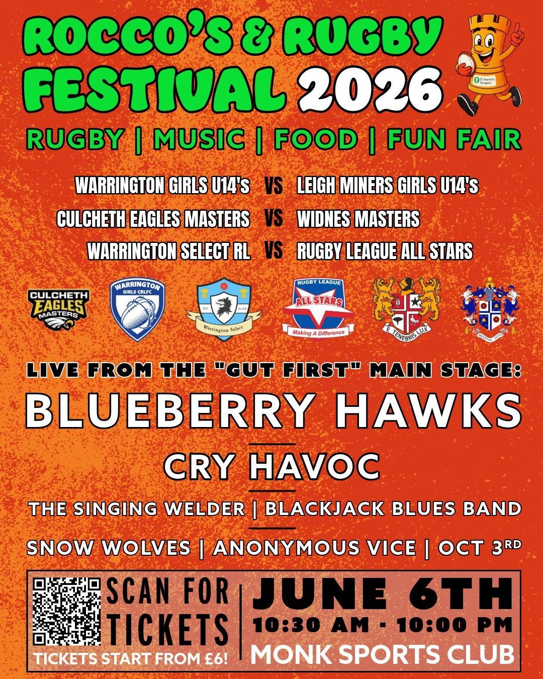 If you are after a brilliant day out in June, this one looks like it could be a cracker. Rocco's and Rugby Festival is on Saturday 6th June at Monk Sports Club, running from 10:30am to 10pm, and tickets start from just £6. You get three rugby matches, a full evening of live music including The Blueberry Hawks and Cry Havoc, a kids fun fair and loads of food traders. It's a charity event too, so every penny goes to a good cause.
